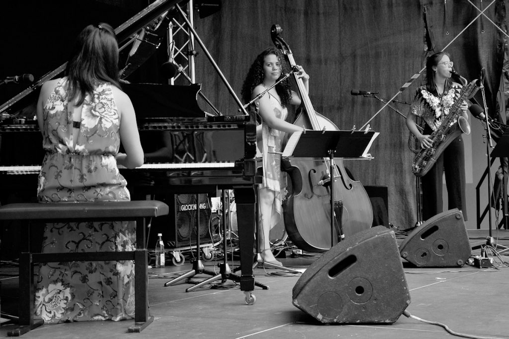 Bassistin Thatiana Gomes bewies die Wandlungsfähigkeit ihres Grooves von den Rhythmen ihrer brasilianischen Heimat bis hin zum Avishai Cohen Cover. Auch sie wechselte völlig überzeugend ständig zwischen Führungs- und Begleitrolle und demonstriete eine Tugend, die das Zusammenspiel aller drei so wohltuend wirken ließ: das Gönnen können.